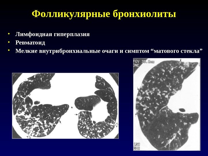 Фолликулярные бронхиолиты • Лимфоидная гиперплазия • Ревматоид • Мелкие внутрибронхиальные очаги и симптом “матового стекла”