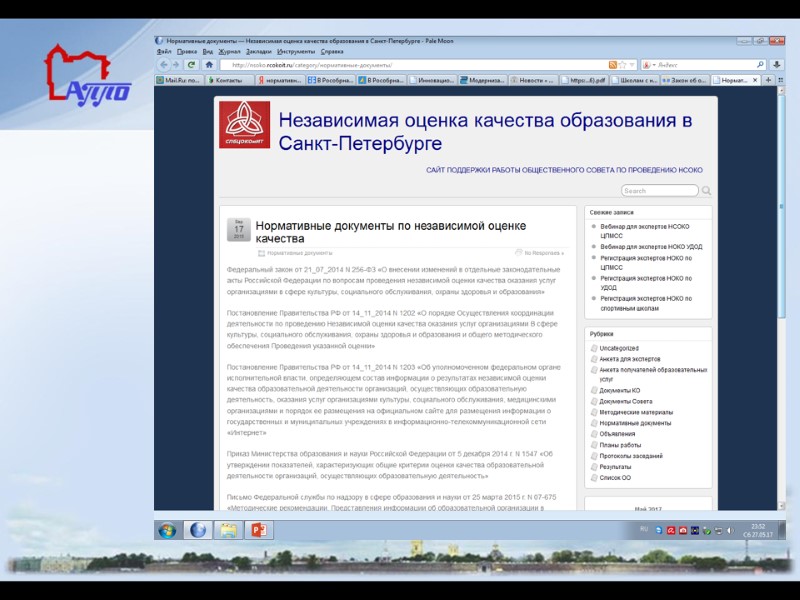 Документы, работы и аналитика Порядок проведения входных диагностических работ: проводятся в 2016 году в соответствии с документами: Распоряжение РОСОБРНАДЗОРА №2322-05 от 30.08.2016 "Об утверждении графиков проведения мероприятий, направленных на исследование качества образования на 2016-2017 уч. г.» Распоряжение Комитета по образованию Санкт-Петербурга от 02.06.2016 "Об утверждении графика региональных диагностических работ" Материалы и аналитические отчеты- на сайте СПб АППО http://www.spbappo.ru/soprovozhdenie-uchebnogo-plana/coprovozhdenie-itogovoy-attestatsii-gkko/ на сайте РЦОКО и ИТ: https://monitoring.rcokoit.ru/