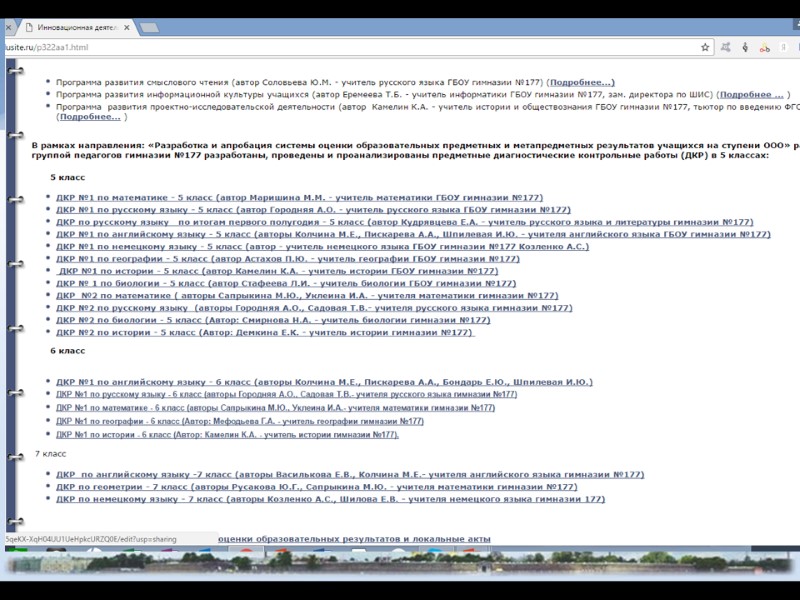 Создание проверочных работ, направленных на проверку предметных достижений учащихся Пример, школа № 316 (Фрунзенский р-н) http://school316.spb.ru/page/study_work/innovation_activity/ Материалы для оценки предметного результата Математике 5 кл Макет итоговой работы (70,50kb) Математика 5 кл Спецификация итоговой работы (42,00kb) Английский язык 5 кл Макет итоговой работы (59,00kb) Английский язык 6 кл Макет итоговой работы Английский язык 6 кл Спецификация итоговой работы Английский язык 6 кл Кодификатор итоговой работы Английский язык Кодификатор планируемых результатов (272,10kb) Английский язык 5 кл Рабочая программа (689,50kb) История 5 кл Макет итоговой работы (16,60kb) История 5 кл Кодификатор планируемых результатов (107,50kb) История 5 кл Рабочая программа (463,50kb) История 6 кл Макет итоговой работы История 6 кл Спецификация итоговой работы История 6 кл Кодификатор планиремых результатов Музыка 5 кл Кодификатор планируемых результатов (29,74kb)