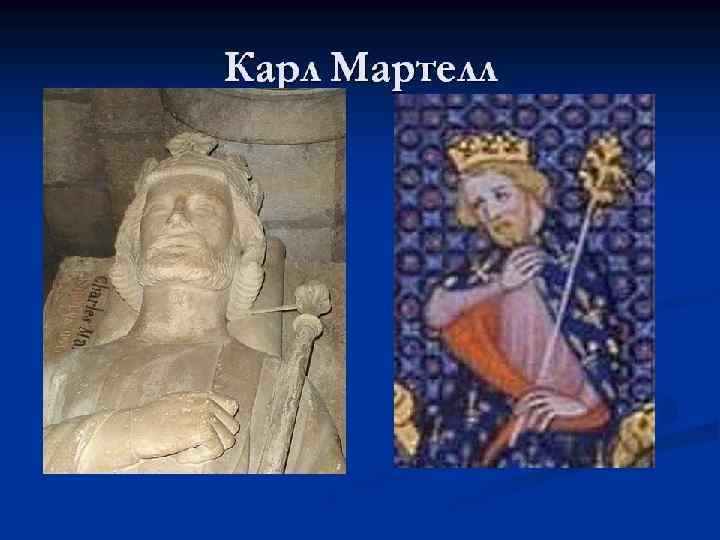 Карл Мартелл – Битва под Пуатье В первой половине VIII в. в Галлию вторгались арабы, завоевавшие Пиренейский полуостров. В 732 г. Карл Мартелл нанёс им поражение под Пуатье, Пуатье остановив их продвижение в Европе.