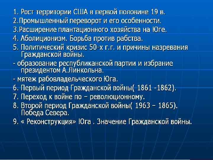 ПЛАН ЛЕКЦИИ (4 часа) –I– Война за независимость США (1775– 1783 гг. ): предпосылки, особенности и конституционные акты – II – Конституция США 1787 г. и Билль о правах 1791 г. – III – Причины и военно-политические итоги Гражданской войны 1861– 1865 гг. – IV – Деятельность Верховного суда США –V– Возникновение двухпартийной системы США