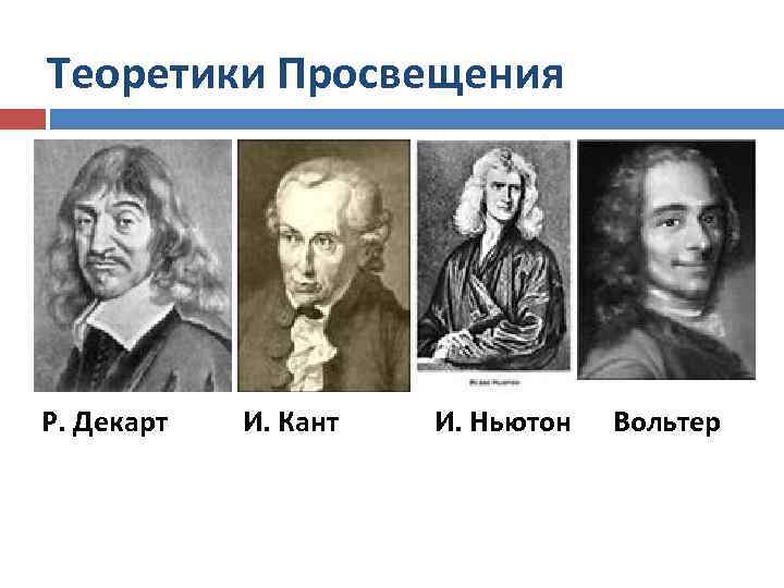Теоретики Просвещения Р. Декарт И. Кант И. Ньютон Вольтер