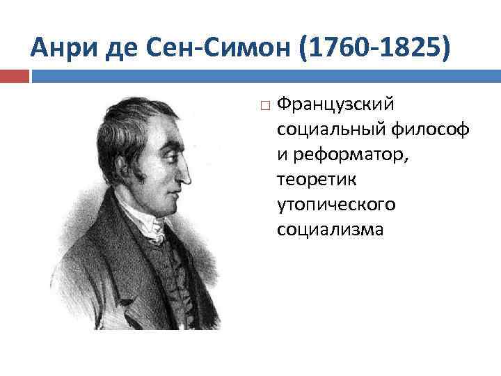 Анри де Сен-Симон (1760 -1825) Французский социальный философ и реформатор, теоретик утопического социализма
