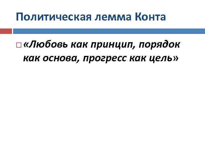 Политическая лемма Конта «Любовь как принцип, порядок как основа, прогресс как цель»