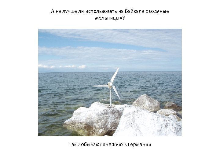 А не лучше ли использовать на Байкале «водяные мельницы» ? Так добывают энергию в Германии