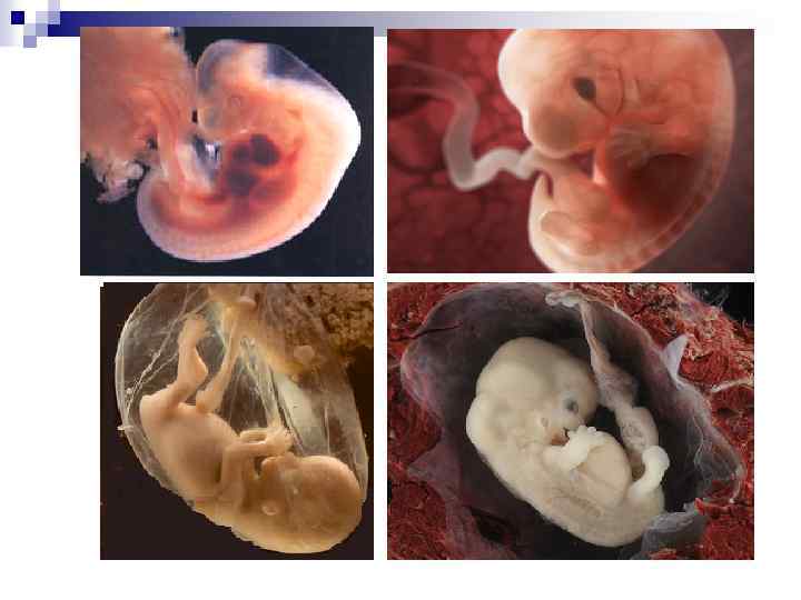 n n n n А: 2 -3 недели; Б: 4 недели; В: 6 недель; Г: плод 4 -5 мес. А, Б: 1 – полость амниона, 2 – тело эмбрионов; 3 – желточный мешок; 4 – трофобласт В, Г: 1– тело плода 2 – амнион 3 – желточный мешок 4 – хорион 5 – пупочный канатик