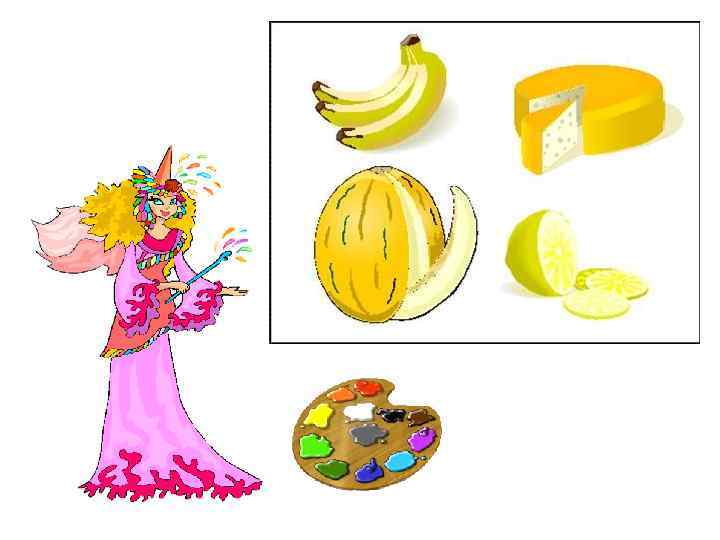 А эти фрукты? Кто знает какого цвета? Желтого.