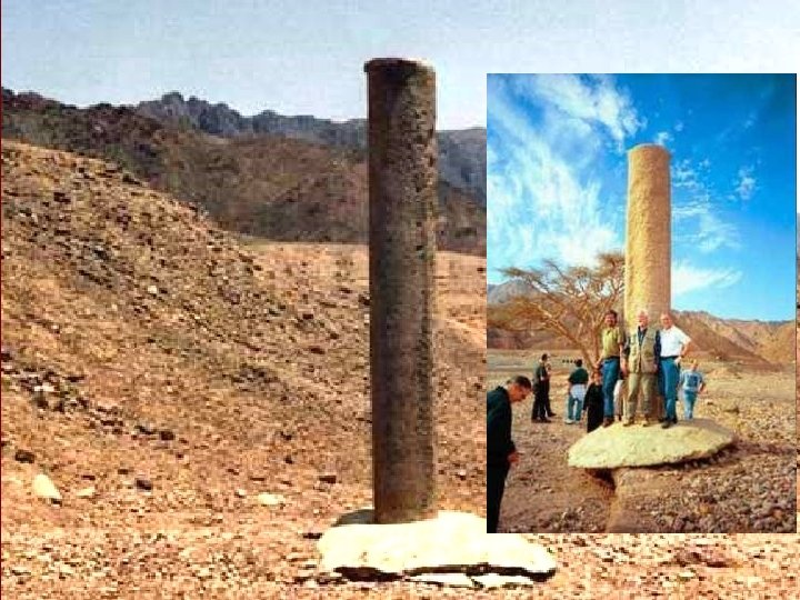 Lors de sa première visite à Nuweiba en 1978, Ron Wyatt trouva couché dans l'eau, une colonne de style phénicien. Malheureusement, les inscriptions qu'elle comportait ont été érodées par l'eau. L'importance de cette colonne ne s'est fait sentir qu'en 1984, lorsqu'une seconde colonne de granit, identique à la première, fut découverte en face, sur la côte saoudienne. Sur cette seconde colonne, les inscriptions sont restées intactes!