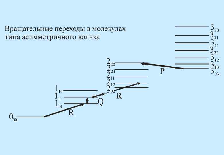 Эффект Штарка В однородном электрическом поле наблюдается расщепление вращательных линий. Вращательная энергия молекулы в этом случае зависит от напряженности поля и собственного дипольного момента и магнитного квантового числа M. Следовательно, частоты наблюдаемых переходов тоже будут от них зависеть. Например, для симметричного волчка: