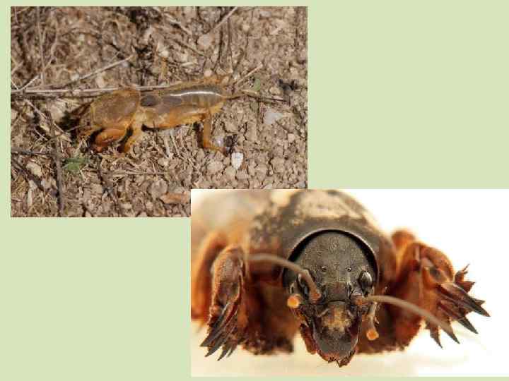 Медведка обыкновенная Gryllotalpa gryllotalpa L. • Крупное массивное насекомое (35 -50 мм) коричневого или бурого цвета. Надкрылья укорочены. Передние ноги копательные • Многоядны Питается высеянными семенами, всходами, молодыми растениями