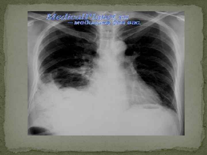 Рентгенограмма грудной клетки ребенка с врожденной левосторонней диафрагмальной грыжей (прямая проекция): субтотальное затемнение левого легочного поля, обусловленное диафрагмальной грыжей.