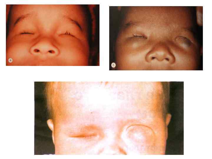 Врожденные аномалии (пороки развития) века. • Развитие век начинается в конце 2 -го месяца гестационного периода. • Из наружной эктодермы образуются кожные складки, растущие навстречу другу и срастающиеся между собой к 4— 5 -му месяцу. • Незадолго до рождения эта спайка подвергается обратному развитию и образуется глазная щель. • Аномалии развития и положения век обусловлены многообразными тератогенными факторами, которые действовали в период закладки и развития век. • Аномалии век могут передаваться по наследству и носить семейный характер.