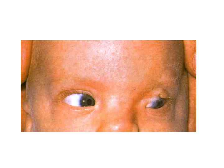 Микрофтальм - малые размеры глазного яблока. Ø односторонний (чаще) Ø двусторонним (реже) - резко уменьшено в размерах(иногда до 1 см в диаметре), - неправильной формы с уплощенной, нередко полупрозрачной роговицей, диаметр которой равен 6 мм или менее, - может быть правильно сформировано и только уменьшено в размерах или же уменьшение размеров сочетается с различными пороками развития глаза.