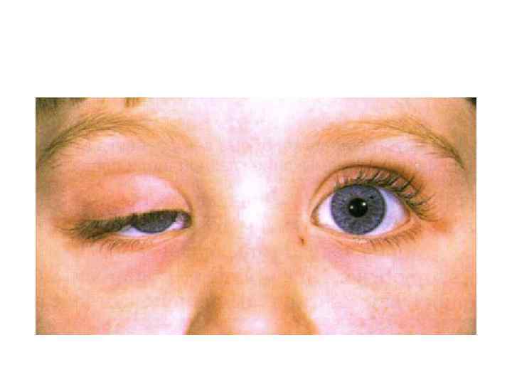 Врожденный птоз. Заболевание с аутосомно-доминантным типом наследования, при котором : - развивается изолированная дистрофия мышцы, поднимающей верхнее веко (миогенный) - имеется аплазия ядра глазодвигательного нерва (нейрогенный) Различают 3 степени птоза: I степень (частичный птоз) — верхнее веко прикрывает роговицу соответственно верхней трети зрачка; II степень (неполный птоз) — прикрыто до половины зрачка; III степень (полный птоз) — веко прикрывает весь зрачок.