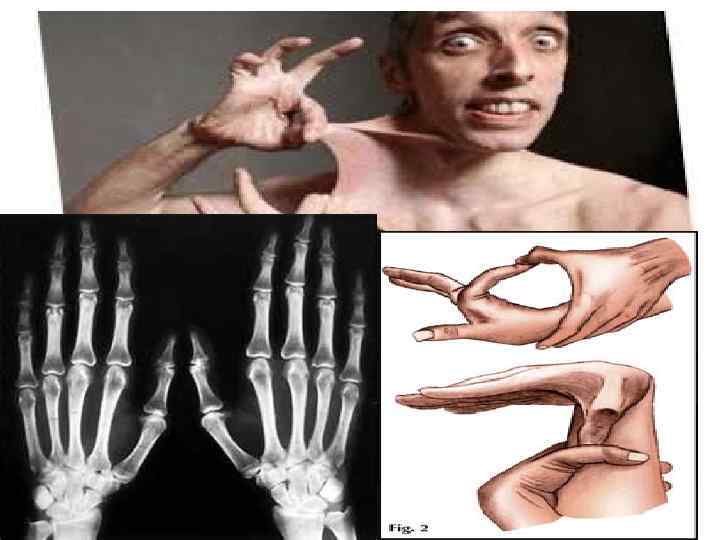 Диагностика • Для объективной оценки генерализованной гипермобильности суставов используются критерии Бейтона. • Признаки гипермобильности суставов (критерии Бейтона) – Пассивное сгибание пястно-фалангового сустава 5 -го пальца в обе стороны. – Пассивное сгибание 1 -го пальца в сторону предплечья при сгибании в лучезапястном суставе. – Переразгибание локтевого сустава свыше 10 град. – Переразгибание коленного сустава свыше 10 град. – Наклон вперед при фиксированных коленных суставах, при этом ладони достигают пола. • Гипермобильность оценивают в баллах: 1 балл означает патологическое переразгибание в одном суставе на одной стороне. Максимальная величина показателя, учитывая двухстороннюю локализацию, - 9 баллов (8 - за 4 первых пункта и 1 - за 5 -й пункт). Показатель от 4 до 9 баллов расценивается как состояние гипермобильности.