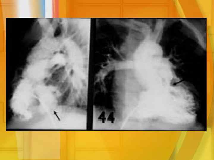 Признаки обогащения и обеднения МКК Артерио-венозный шунт: Вено-артериальный шунт: • Бледность • Цианоз • Частые бронхолегочные заболевания • Одышка • Сопенье, кряхтенье • Одышка • Хрипы • Левожелудочковая недостаточность кровообращения R: усиление легочного рисунка, выбухание легочного конуса • Правожелудочковая недостаточность R: обеднение легочного рисунка, западение талии сердца