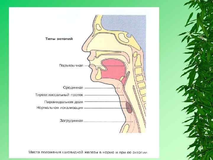 Этиология врожденного гипотиреоза Форма гипотиреоза Частота встречаемости Первичный гипотиреоз 1. Дисгенезия щитовидной железы -Агенезия -Гипогенезия -Дистопия 2. Дисгормоногенез -дефект рецептора ТТГ -Дефект транспорта иода -Дефект пероксидазной системы -Дефект синтеза тиреоглобулина 1: 4000 (85 -90%) Вторичный гипотиреоз 1: 100000 (3 -4%) 1: 30000 -50000 (5 -10%) (гипопитуитаризм) Периферическая резистентность к тиреоидным гормонам ? Транзиторный гипотиреоз ?