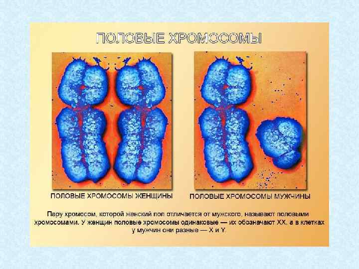 Карта хромосомного набора человека Кариотип человека содержит 22 пары хромосом, одинаковых у мужского и женского организма, и одну пару хромосом, по которой различаются оба пола. Хромосомы, одинаковые у обоих полов, называют аутосомами. Хромосомы, по которым мужской и женский пол отличаются друг от друга - это половые или гетерохромосомы. Половые хромосомы у женщин одинаковы, их называют Х-хромосомами. У мужчин имеется Х-хромосома и одна Y-хромосома.