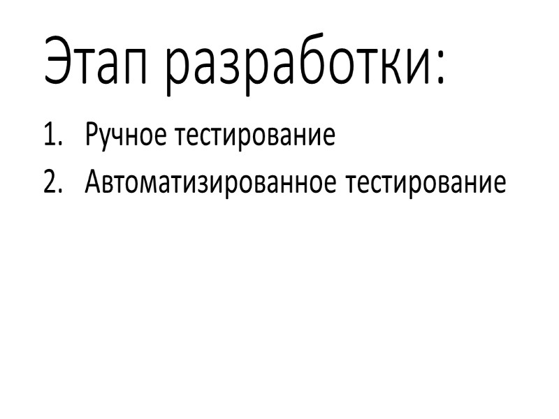 Этап разработки: Ручное тестирование Автоматизированное тестирование