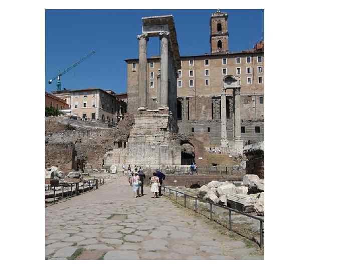 Ранние сооружения (царский Рим, ранняя республика до I в. до н. э. ) • Руины крепостной стены, сооруженной из квадратных глыб вулканического камня царем Рима Сервием Туллием (11 км. ). • Комплекс Римского Форума (Forum Romanum), место проведения важнейших событий политической и экономической жизни (народные собрания, судебные разбирательства, церемонии религиозных обрядов). Окончательный облик сформировался к концу республиканского периода • Форум включал общественные здания, храмы, арки, колоннады, статуи, священную дорогу (Via Sacra), торговые ряды. • Храм Весты (круглый) • Руины аркад Табулариума (архивы республики).