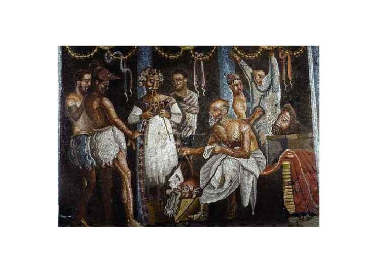 Влияние этрусков на римскую культуру • Царская власть • Символы власти: «фасции» - пучки розог с воткнутыми в них топориками, складное, выложенное слоновой костью курульное кресло, институт 12 ликторов, шествовавших перед главой государства, тога с пурпурной каймой • Традиция триумфов – обычай пышно справлять воинские победы – победоносное шествие полководцев во главе войска и пленников, триумфальные ворота. Победитель в золотой диадеме, с жезлом из эбенового дерева, в пурпурной тунике, расшитой изображениями пальм, въезжал на золотой колеснице в святилище. • Триада главных небесных богов - бог неба Тину, богиня семьи Уни, богиня войны и мудрости Менрва