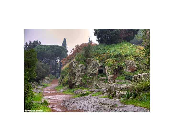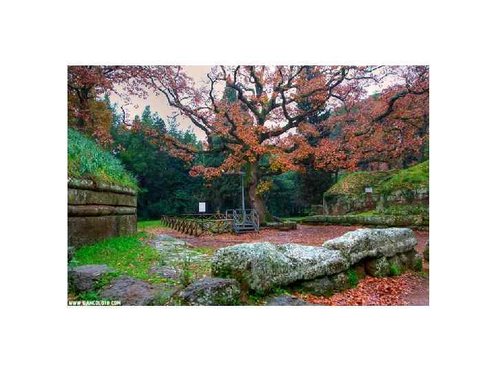 Этрусские некрополи Черветери и Тарквинии, IX – I вв. до н. э. , 2004 г. • Черветери (Цере) - древнее этрусское поселение. • Черветери (Cerveteri) расположен примерно в 55 км от Рима • Население Цере в период расцвета составляло 25 тысяч человек • Около Черветери находится один из самых больших этрусских некрополей (500 -600 гг. до н. э. ) • Здесь же найдены огромные круглые гробницы знати (VII и VI вв. до н. э. ) • В 1836 году близ Черветери была найдена гробница богатой этрусской женщины