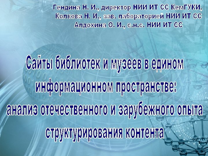 Информация для нас НИИ ИТ СС Кем. ГУКИ Информация о нас