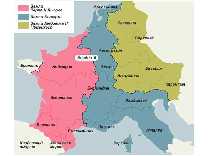 ВЕРДЕНСКИЙ РАЗДЕЛ • ПРОИЗОШЕЛ В ВЕРДЕНЕ МЕЖДУ ВНУКАМИ КАРЛА ВЕЛИКОГО, СЫНОВЬЯМИ ЛЮДОВИКА БЛАГОЧЕСТИВОГО