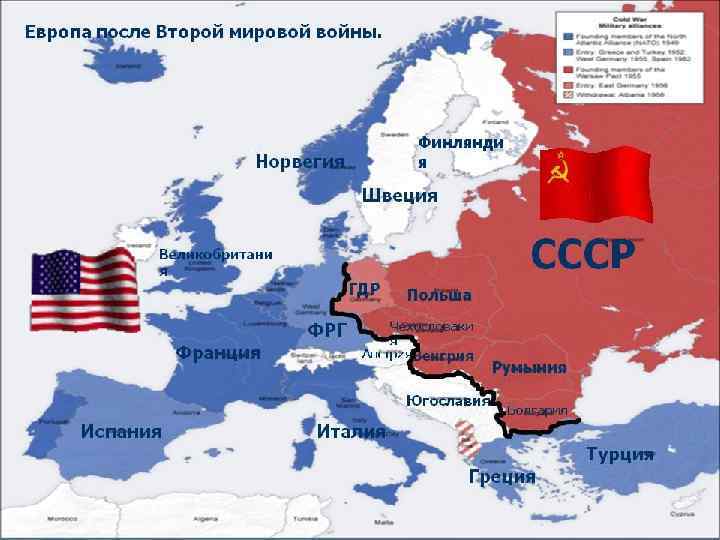 СССР влияние: в Югославии, Албании, Польше, Чехословакии, Румынии, Болгарии, Венгрии. • 5 марта 1946 г. - Фултонская речь ( У. Черчилль) начало Х. в. • 12 марта 1947 г. - «Доктрина Р. Трумэна» сдерживание СССР и отбрасывание социализма, война неизбежна. • Холодная война- глобальное геополитическое, военное, экономическое и идеологическое противостояние в 1946 -1989 г. между СССР и США и их союзниками.