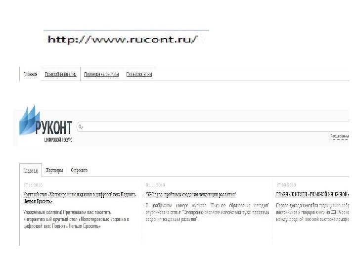 Консорциум «Контекстум» , 2008 г. ООО «Агентство «Книга-Сервис» www. pressa-rf. ru imap. akc. ru/w ww. akc. ru ОАО «ЦКБ «БИБКОМ» imap. akc. ru/www. ckbib. ru www. bibkom. ru ОАО «Агентство «АРЗИ» www. arzi. ru DMR-RUSEXPRESS, GMBH www. pressa. de Информационная технология Контекстум цифровой ресурс РУКОНТ