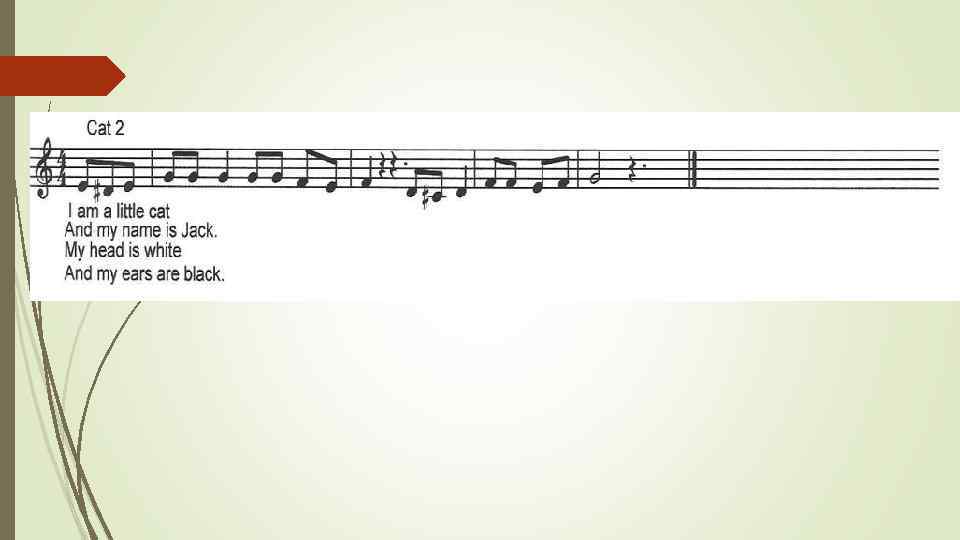 Scene 8 CAT 2 (sings): I am a little cat And my name is Jack. My head is white And my ears are black.