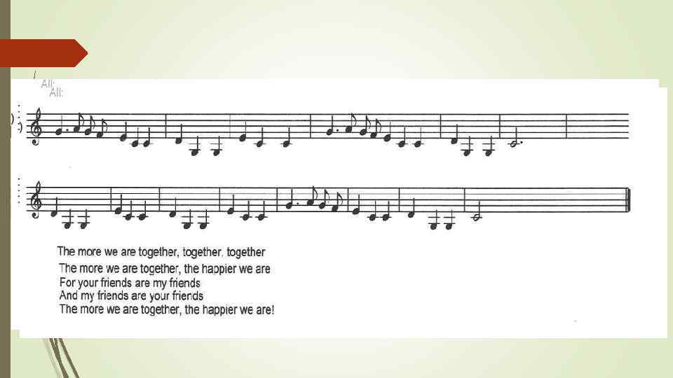Final Scene All (sing the song): The more we are together, together The more we are together, the happier we are For your friends are my friends And my friends are your friends The more we are together, the happier we are.