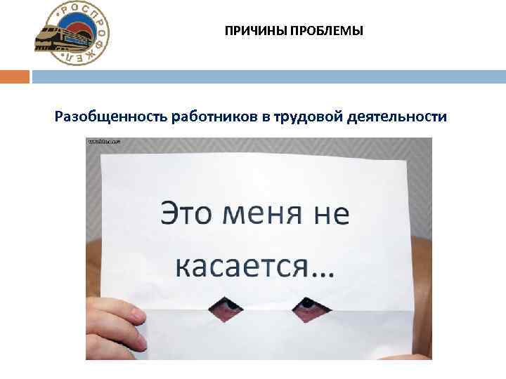 ПРИЧИНЫ ПРОБЛЕМЫ Разобщенность работников в трудовой деятельности