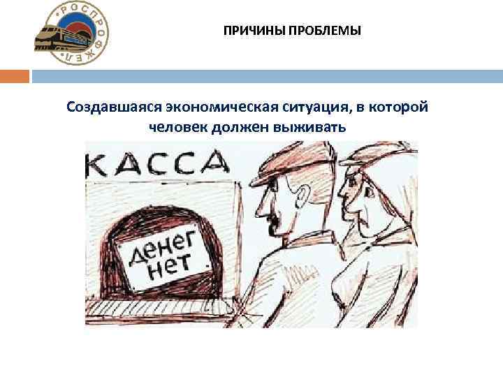 ПРИЧИНЫ ПРОБЛЕМЫ Создавшаяся экономическая ситуация, в которой человек должен выживать