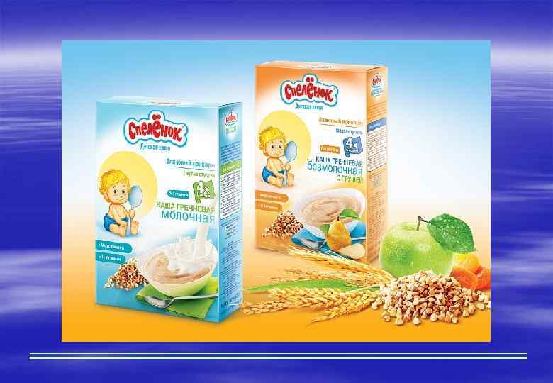 Зерновой прикорм § Каша (с 6 мес. )— один из основных источников углеводов, растительных белков и жиров, пищевых волокон, железа, селена, витаминов В 1, В 2, РР и др. § Прикорм на основе злаков следует начинать с безглютеновых круп (рисовой, гречневой, позднее кукурузной § Каши могут быть молочными или безмолочными § Безмолочные каши разводят грудным молоком, детской смесью, получаемой ребёнком. § В дальнейшем могут использоваться глютенсодержащие каши (овсяная, ячневая, пшеничная, манная) и каши из смеси круп. К году количество доводится до 200 -220 мл, вытесняет