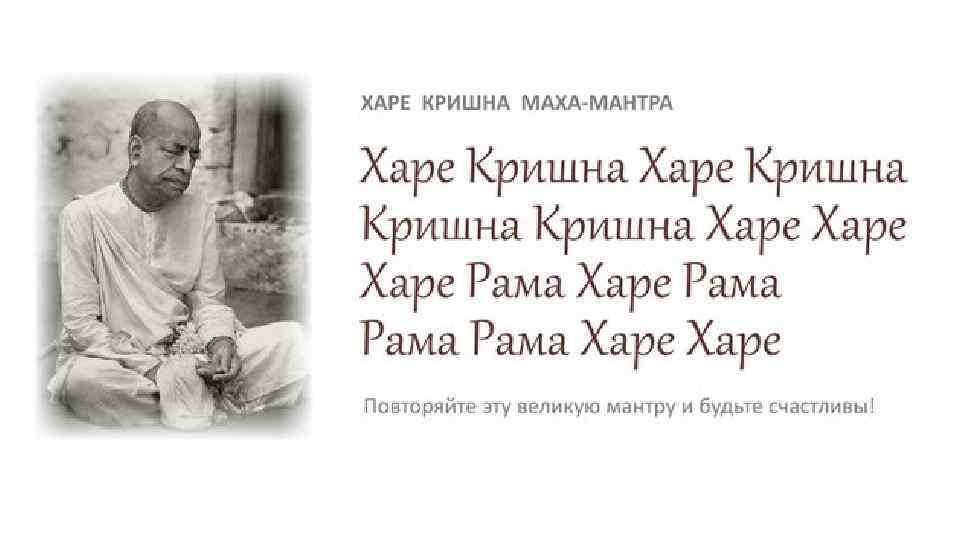 Бхактиведанта Свами Прабхупада объясняет, что «Харе» — это обращение к энергии преданного служения Богу, персонифицированной формой которой является женская ипостась Бога — Радха. Слово «Харе» представляет собой звательный падеж от Хара — одного из имён Радхи. «Кришна» и «Рама» — это имена Бога, которые соответственно переводятся как «Всепривлекающий» и «Всерадующий» . Таким образом, текст мантры можно перевести как «О Всепривлекающий, о Всерадующий Господь, о духовная энергия Господа! Прошу, позволь мне преданно служить Тебе» .