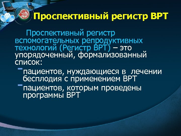 Проспективный регистр ВРТ Проспективный регистр вспомогательных репродуктивных технологий (Регистр ВРТ) – это упорядоченный, формализованный список: пациентов, нуждающиеся в лечении бесплодия с применением ВРТ пациентов, которым проведены программы ВРТ -