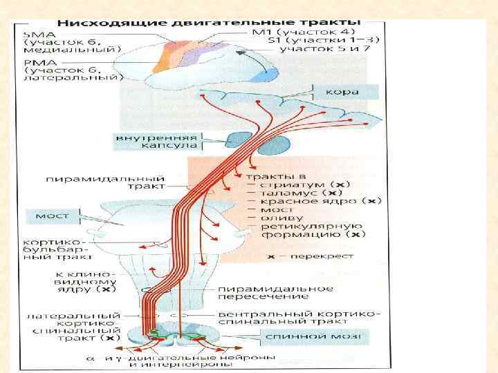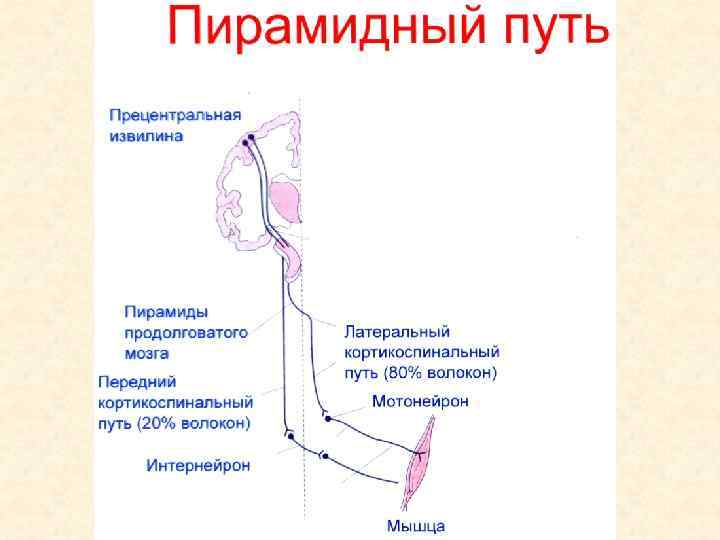 Чувствительные пути Клиновидный пучок Бурдаха в кору больших полушарий Тонкий пучок Голя осознаваемая проприоцептивная импульсация Задний пучок Флегсига в мозжечок Передний пучок Говерса неосознаваемая проприоцептивная импульсация Латеральный спиноталамический – болевая и температурная чувствительность Передний спиноталамический – тактильная чувствительность