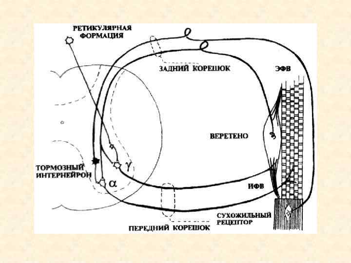 Спинальные соматические рефлексы • Проприоцептивные (сухожильные, миотатические) • Кожно мышечные (брюшной, кремастерный, подошвенный, анальный) • Шейные позно тонические (наклон, запрокидывание головы) • Ритмические (чесательный, потирание, шагание)