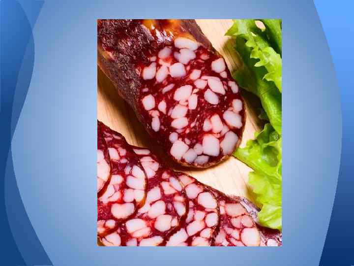 5. Сыровяленые колбасы Производится из фарша маринованного мяса. Коптится в холодном дыме 3 -4 суток. Происходит ферментация мяса и его обезвоживание, после чего вялится при температуре 15 -18 градусов.