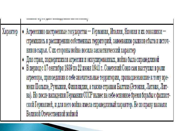 Главные причины войны: 1) Противоречия между державами победительницами в Первой Мировой войне и побеждённой Германией. 2) Милитаризация экономики и последующая экспансия, как способ вывода национальных держав из «Великого кризиса и последующей депрессии» . 3) Теории расового превосходства Гитлеровской Германии и Милитаристской Японии, реваншистские настроения.