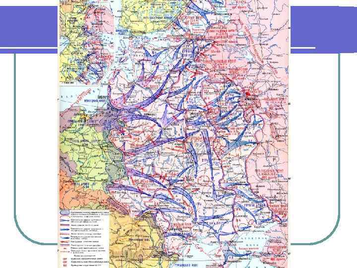 Завершающий этап Великой Отечественной войны 1 -й Украинский фронт разгромил группировку «Северная Украина» (Львовско. Сандомирская операция), освободил Львов. l 2 -й и 3 -й Украинские фронты освободили Кишинев (Ясско-Кишиневская операция). l Военные действия переносятся на территории союзников Германии и оккупированных ею стран. На протяжении лета-осени 1944 г. были освобождены Румыния (2 -й Украинский фронт), Болгария (2 -й Украинский фронт), Югославия (3 -й Украинский фронт), Венгрия и Словакия. l