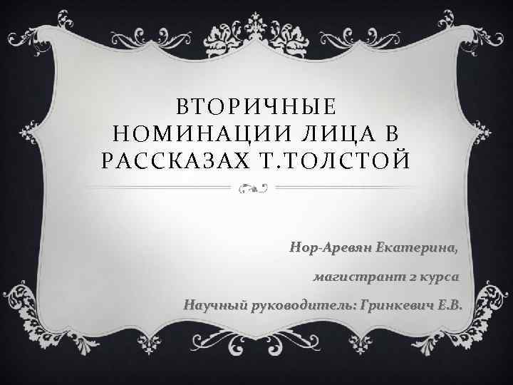 ВТОРИЧНЫЕ НОМИНАЦИИ ЛИЦА В РАССКАЗАХ Т. ТОЛСТОЙ Нор-Аревян Екатерина, магистрант 2 курса Научный руководитель: Гринкевич Е. В.