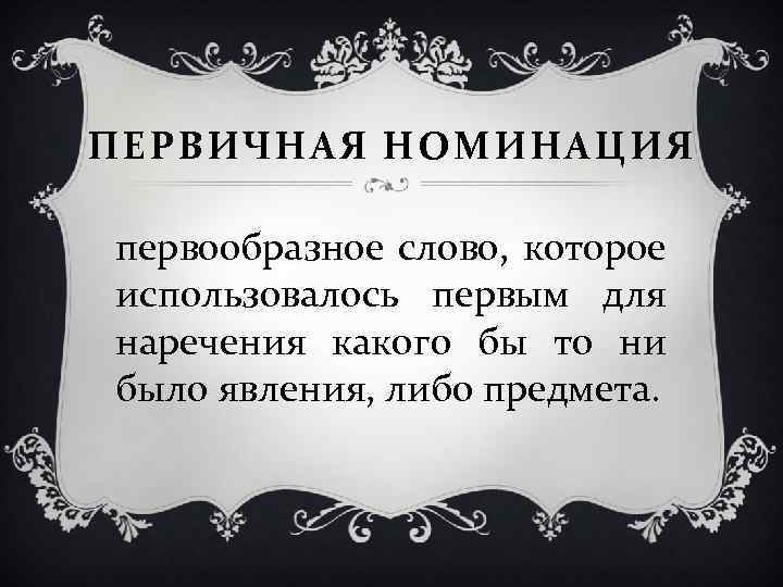 ПЕРВИЧНАЯ НОМИНАЦИЯ первообразное слово, которое использовалось первым для наречения какого бы то ни было явления, либо предмета.