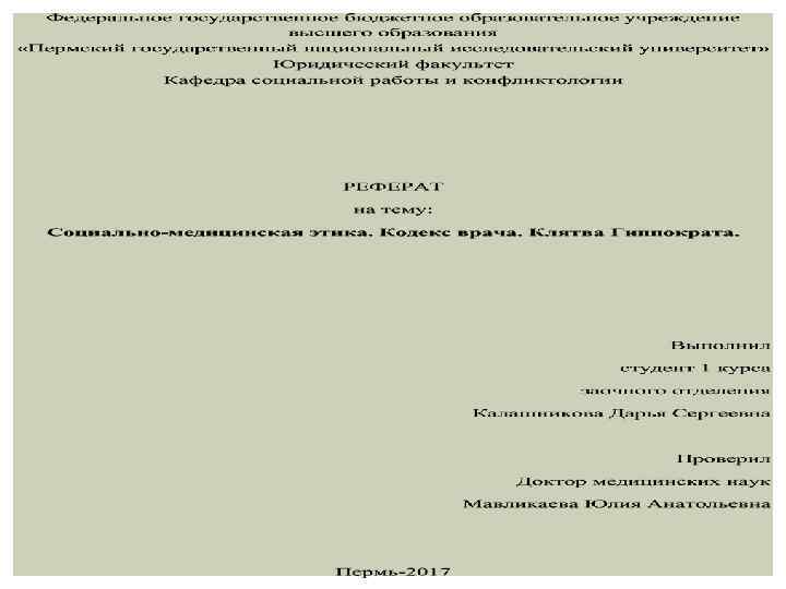 ВВЕДЕНИЕ Социально-медицинская этика - это раздел философской дисциплины этики, объектом исследования которого являются морально-нравственные аспекты социальной медицины. В более узком смысле под социально-медицинской этикой понимают совокупность нравственных норм профессиональной деятельности работников. В последнем значении социальномедицинская этика тесно соприкасается с медицинской деонтологией.