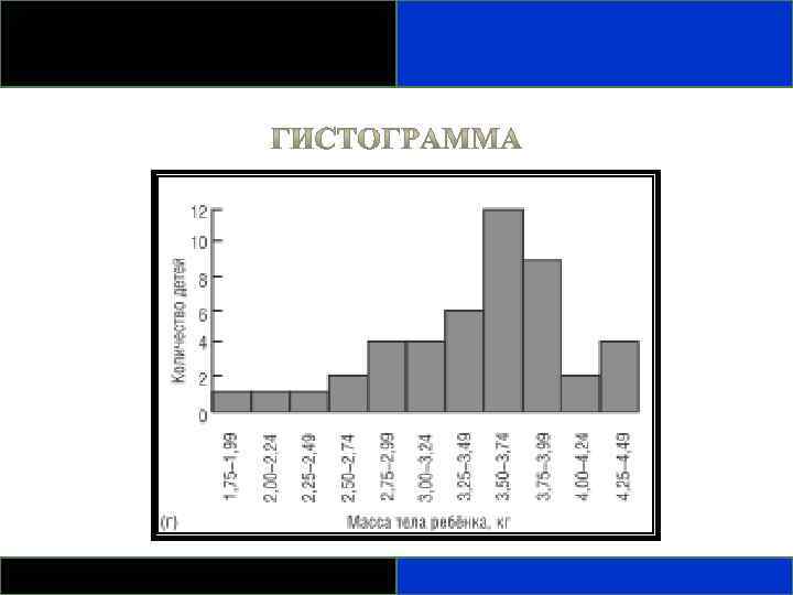ПРИМЕНЕНИЕ ПРОЦЕНТИЛЕЙ Межквартильный размах – разница между первым и третьим квартилем, т. е. между 25 -м и 75 -м процентилями. В него входят центральные 50% наблюдений в упорядоченном наборе, где 25% наблюдений находятся ниже центральной точки и 25% - выше. Интердецильный размах содержит в себе центральные 80% наблюдений, т. е. те наблюдения, которые располагаются между 10 -м и 90 -м процентилями. Часто используют размах, который содержит 95% наблюдений, т. е. он исключает 2, 5% наблюдений снизу и 2, 5% сверху. Можно применить этот интервал, осуществляя диагностику болезни. В этом случае он называется референтный интервал, референтный размах или нормальный размах.