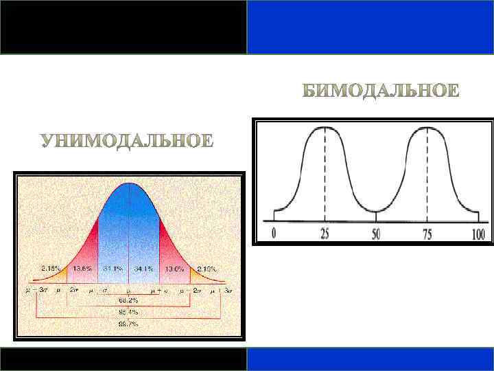 ПОКАЗАТЕЛИ НОРМАЛЬНОГО РАСПРЕДЕЛЕНИЯ ü Среднее (average, mean) Мода (mode) Медиана (median) ü Дисперсия (variance) Стандартное отклонение (standard deviation) Интерквартильное расстояние