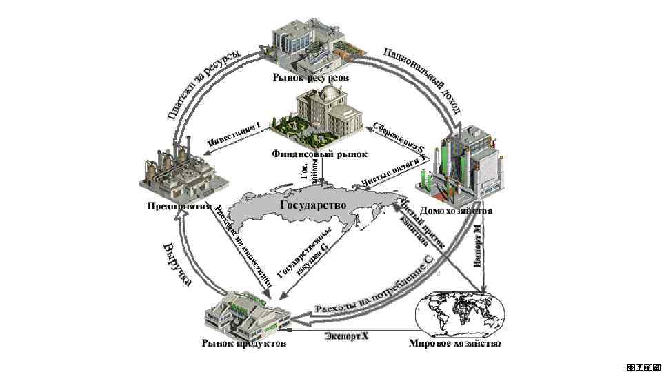 Рынок благ (обмен) ды хо Общ. блага апи тал Расходы Ресурсы уги д, к Фирма (производство) рсы у Рес де Из усл ля, тру Расходы Зем Общ. блага Налоги (распределение) д То и ры д хо рж ки (предоставление ресурсов и потребление) Государство вар ы а Тов Налоги уги Дом. Хозяйства хо и у сл П До Товары и услуги и еб тр о ьск тел с ра ие Рынок ресурсов (обмен) Де н еж н ый до