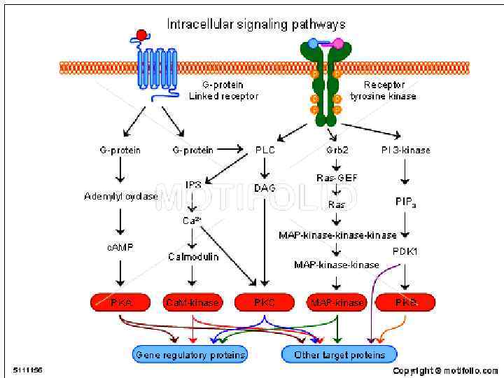 Внеклеточная сигнальная молекула Рецептор Мембрана клетки-мишени Внутриклеточные сигнальные белки Эффекторные белки Метаболические Ген Белки ферменты регулирующие цитоскелета белки