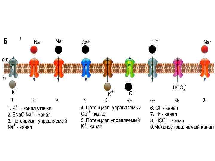 1. Потенциалчувствительные 2. Хемочувствительные 3. Механочувствительные Неуправляемые каналы (утечки)